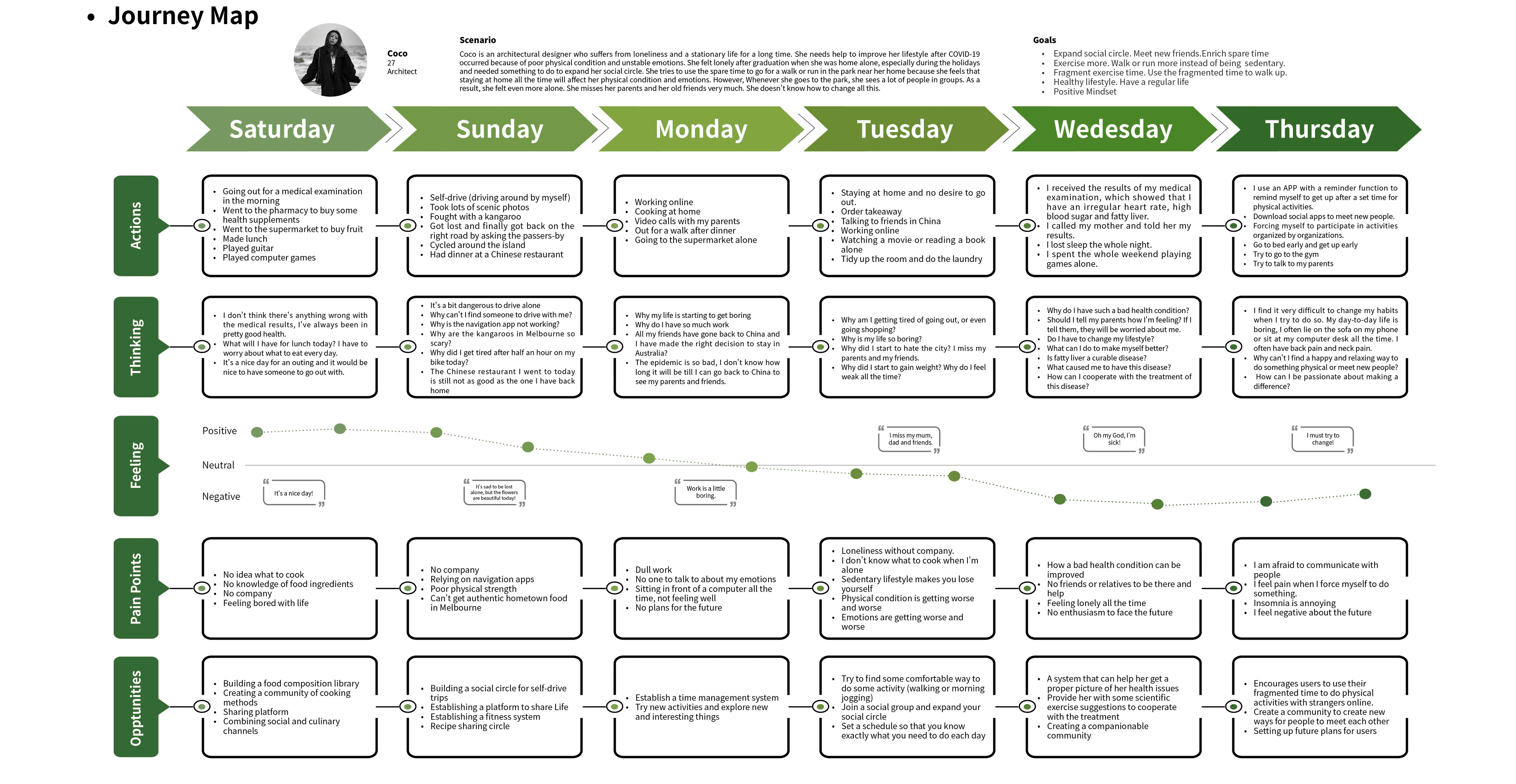 This report focuses on user research. In the course of this project, I conducted extensive research on comparable products, identifying their strengths and weaknesses. I further delved into understanding user needs and experiences using tools such as Field Diary, Emotion Boards, Storyboards, Journey Maps, and Persona profiles.